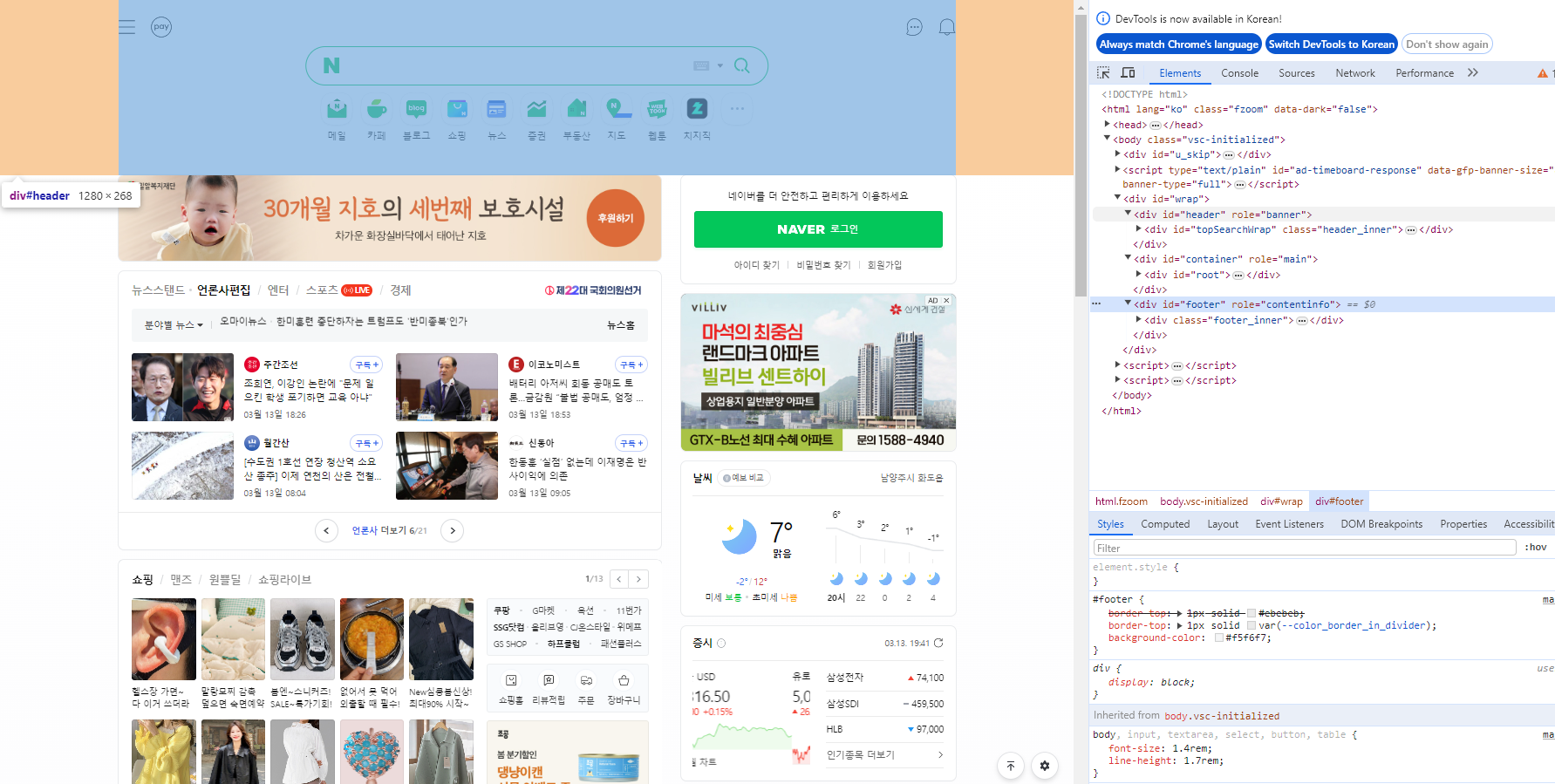 즉, block 요소는 사용가능한 모든 영역을 차지하고 inline 요소는 필요한 만큼의 영역만 차지하는 것이다.